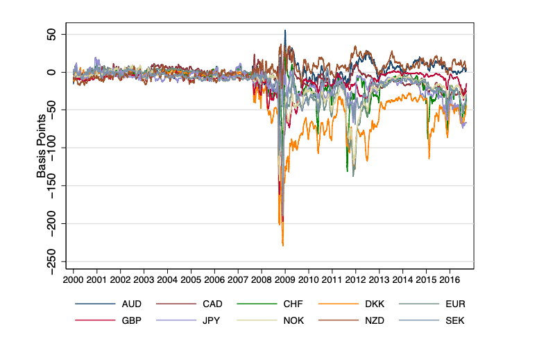 Source: Du, Tepper and Verdelhan (2018), “Deviations from Covered Interest Rate Parity,” Figure 2.
