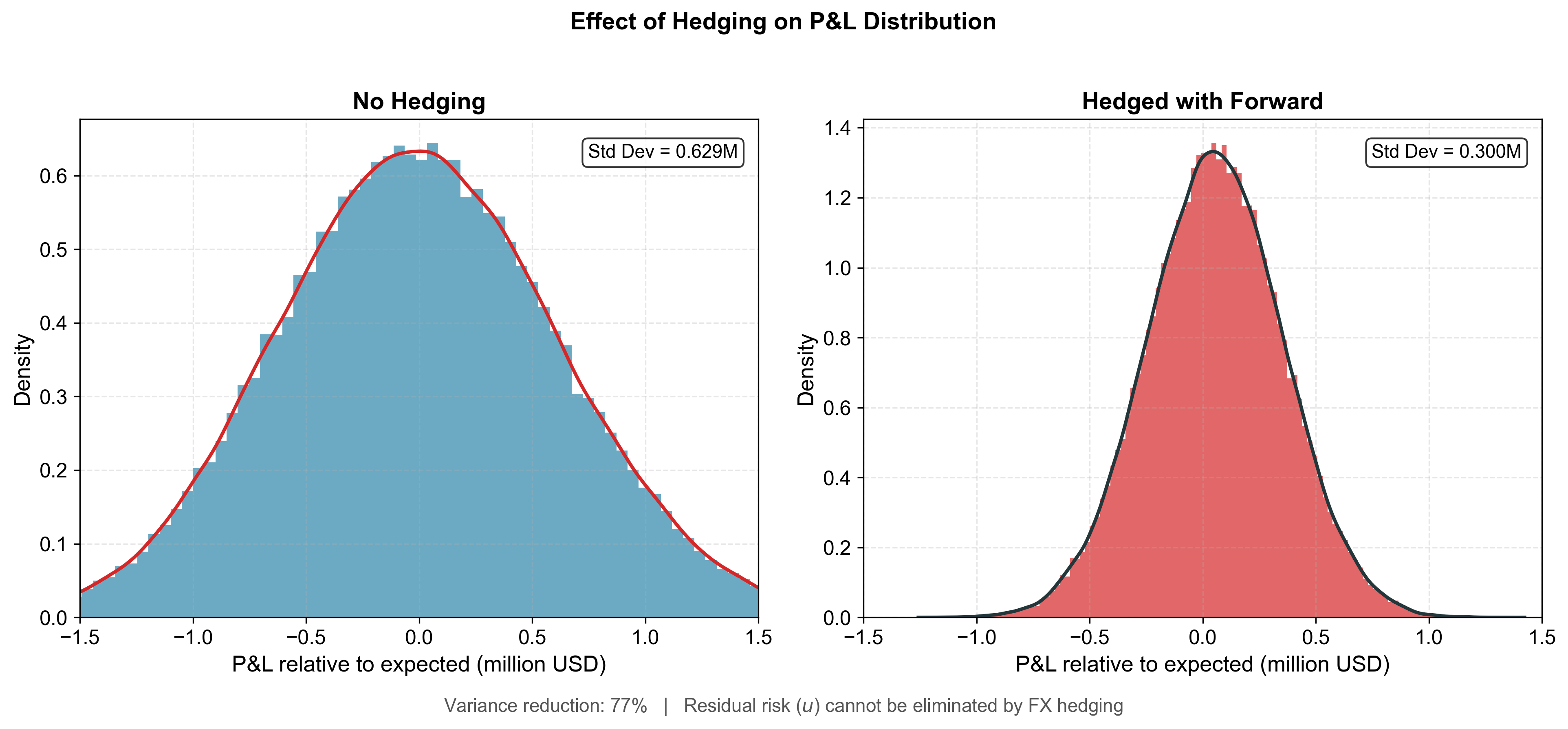 Residual risk\(u_T\) remains — it cannot be hedged with FX instruments